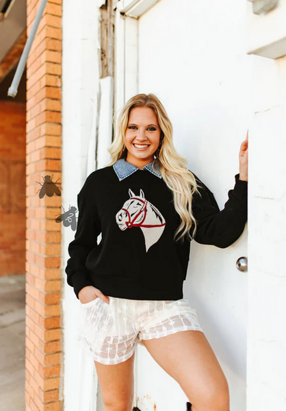 this sweatshirt is giving all vintage feels and YES your eyes aren't deceiving that is a RED COLOR we added.